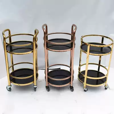 Stainless steel round wine dining car simple flash gold glass hotel 4s dessert snack fruit mobile push service