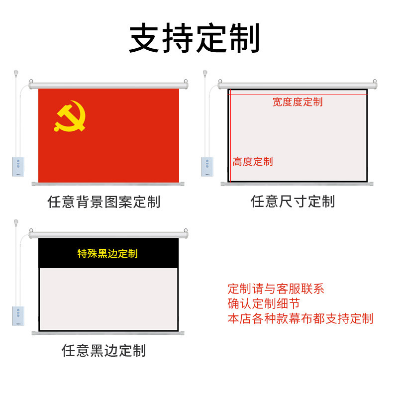 Type dream electric curtain cloth projection curtain cloth remote control lifting projector white curtain cloth Home HD wall-mounted curtain wall hanger 4K anti-light 100 inch 120 inch Family cinema projection screen customization