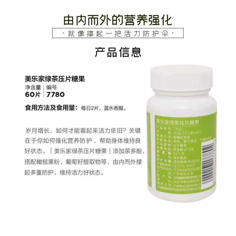 Melaleuca green tea tablet candy 60 pieces environmentally friendly supermarket dietary nutritional supplement tea polyphenol antioxidant