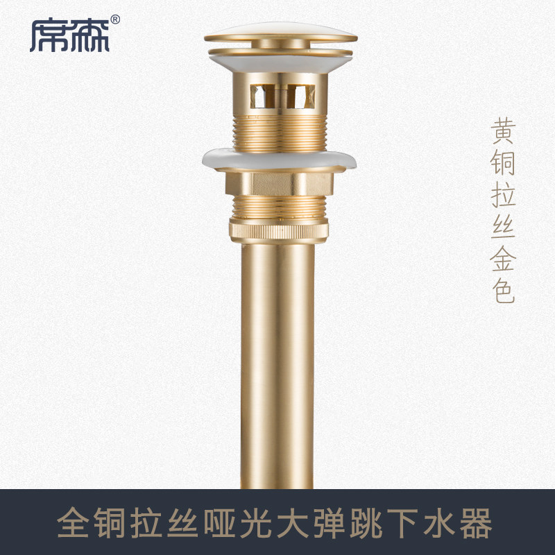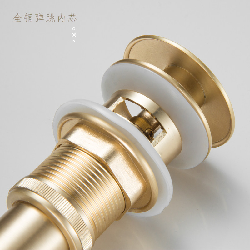 Full Copper Light Lavish Wire Drawing Golden Wash Face Basin Down Sprinkler Big Bounce Dewater Drain Pipe Accessories Suit