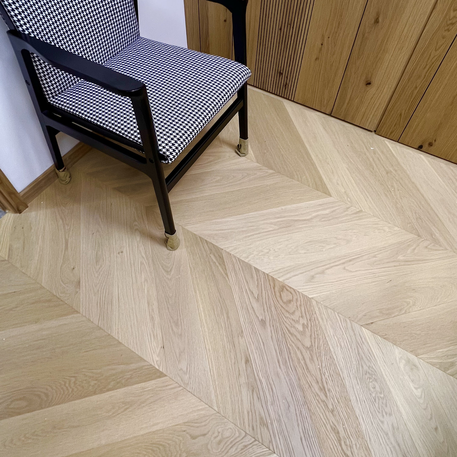 Imported European oak / black walnut / 5G lock buckle three layers of solid wood large fish bone patch paving floor warming is suitable
