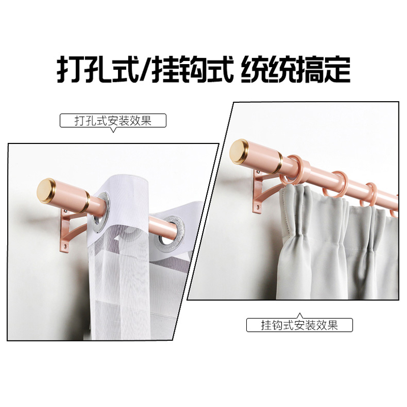 Window Curtain Rod Aluminum Alloy Silent Roman Stem Thickened Single Pole Double Lever Top Side Mounting Bracket Perforated Curtain Rod Special Thickness