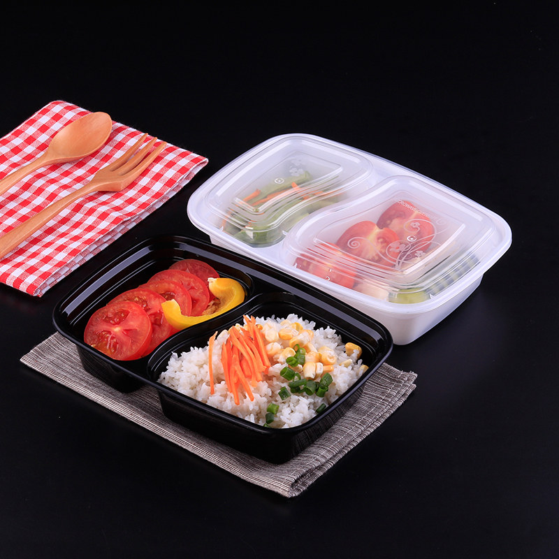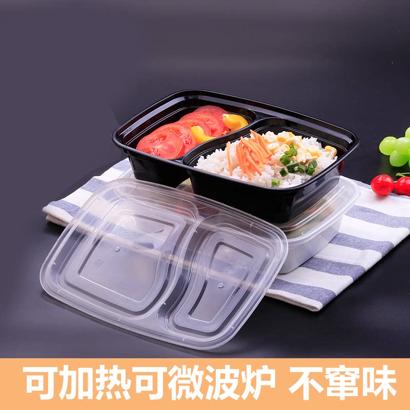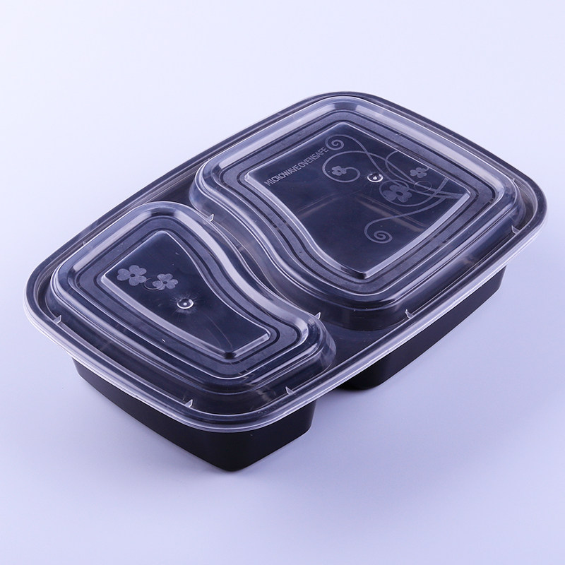 American two-compartment lunch box disposable lunch box takeaway packing box fast food with cover 1000ml black lunch box thickened