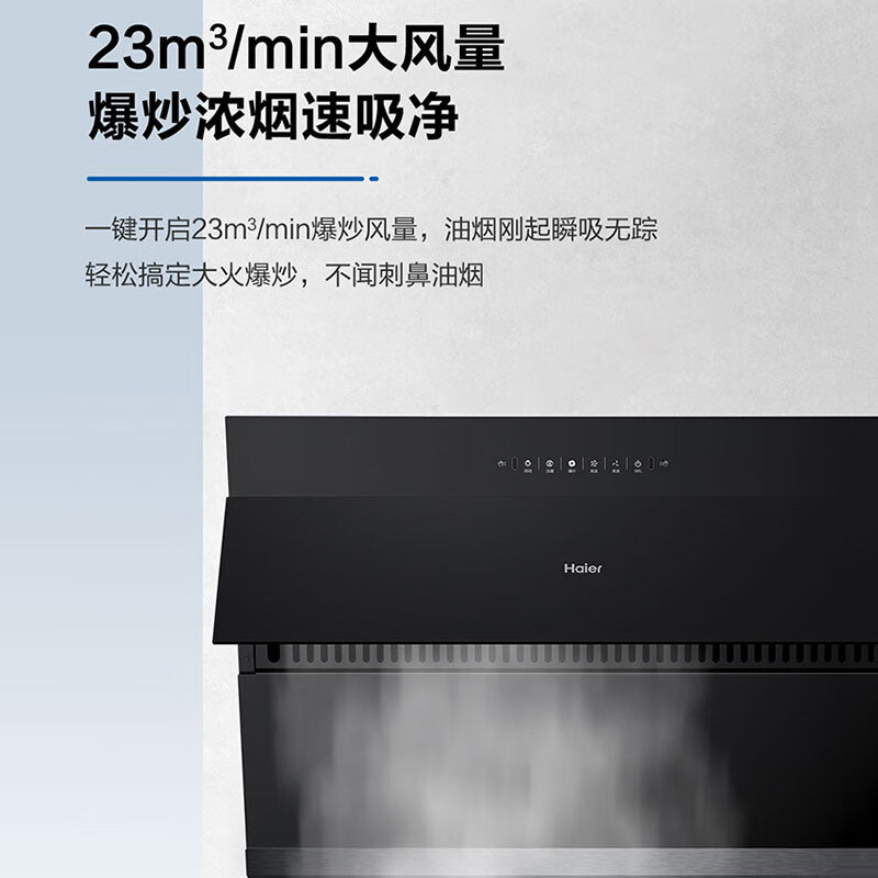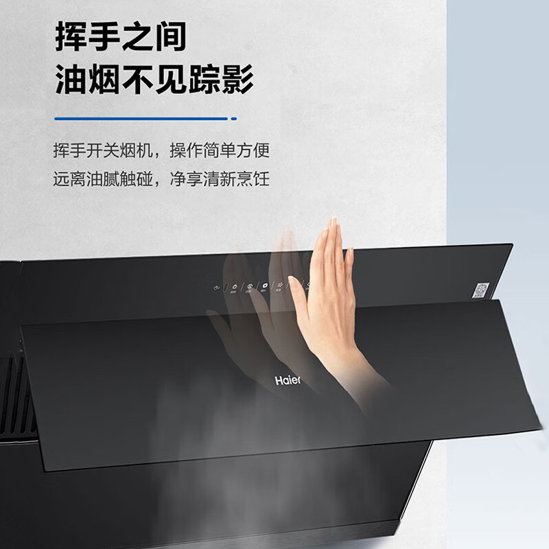 Haier side suction type ventilator home kitchen waving wise control 23 cubic large suction free of washing smoker-Taobao