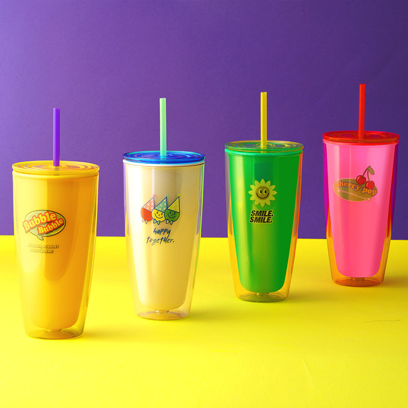 (750mL)Plastic straw Cup Cherry (Pink) (750mL)Plastic straw cup Ice cream (White) (750mL)Plastic straw cup Bubbles(yellow)