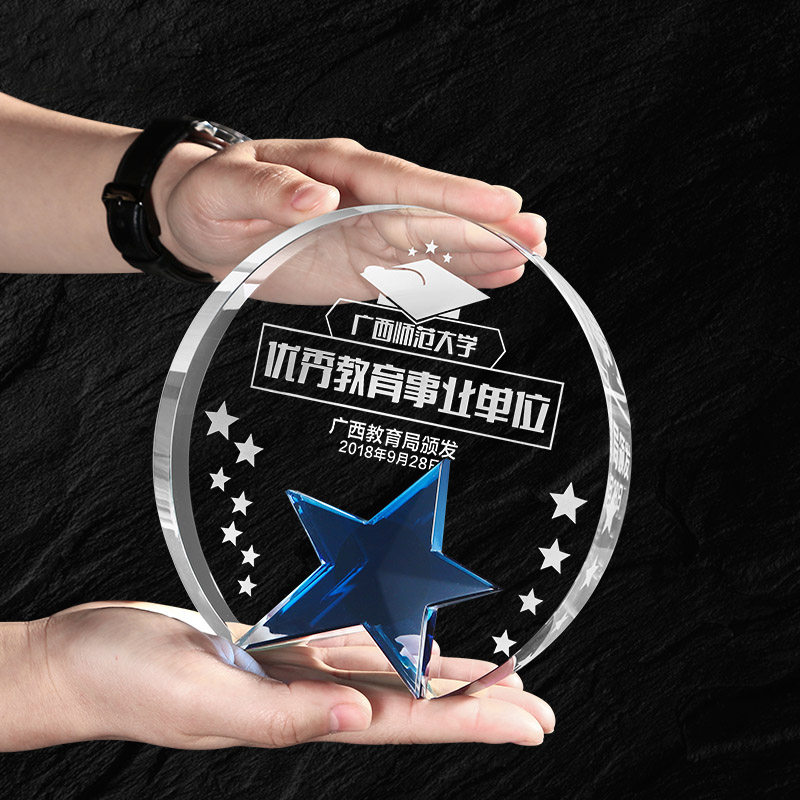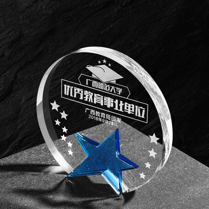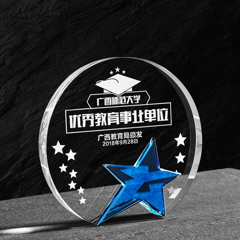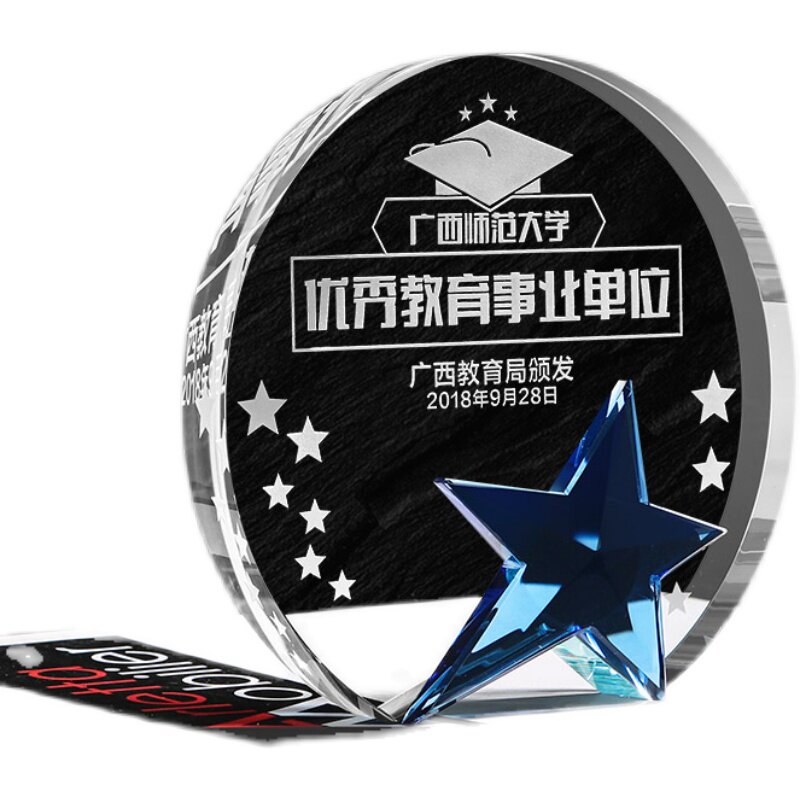 Creative Round Crystal Trophy Custom Medal Set as a pentagram Authorized Outstanding Employee Trophy Making Lettering Lettering