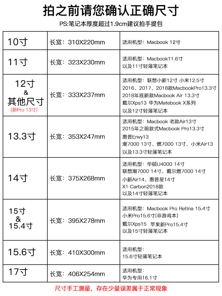 10 10 11 11 inches 12 14 inches 15 15 17 17 inches 13 3 15 6 inches 13