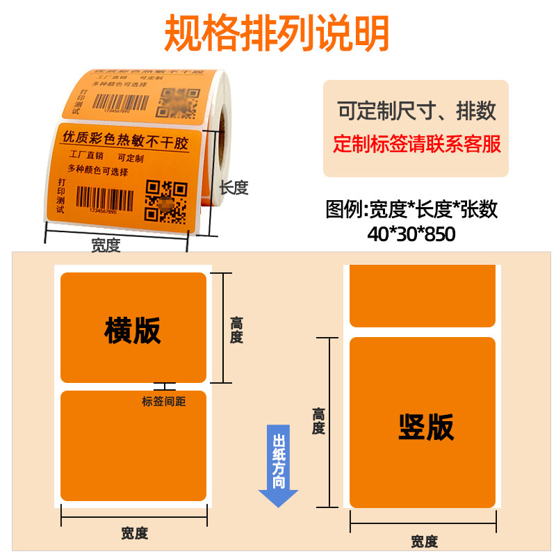 Prolong color three-proof thermal label paper 60*40 20 30 50 70 80 90 100 self-adhesive barcode printer two-dimensional code red yellow blue green sticker supermarket