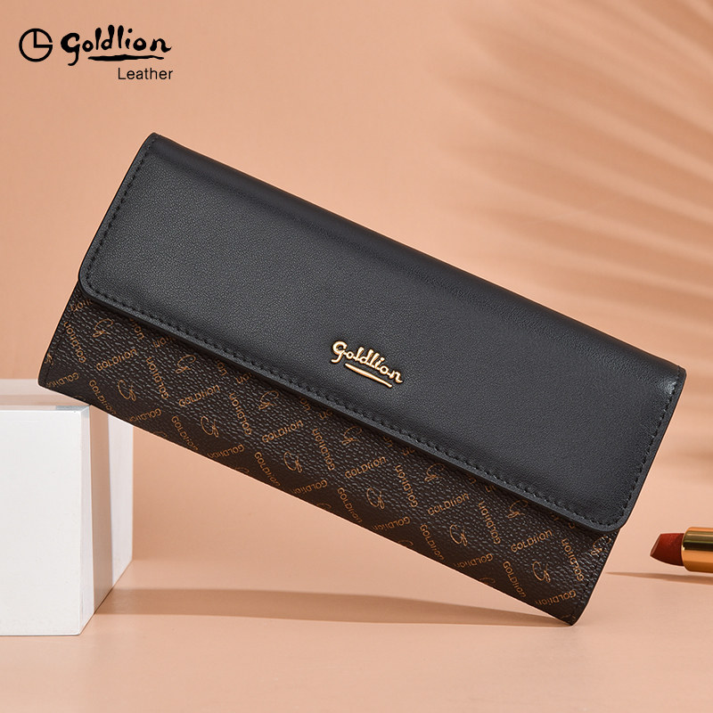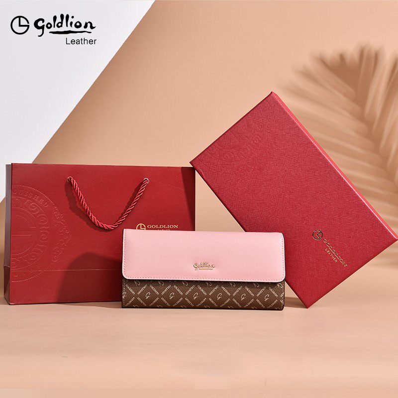 Goldlion wallet ladies long version clutch wallet 2022 new clutch bag brand pvc with genuine leather