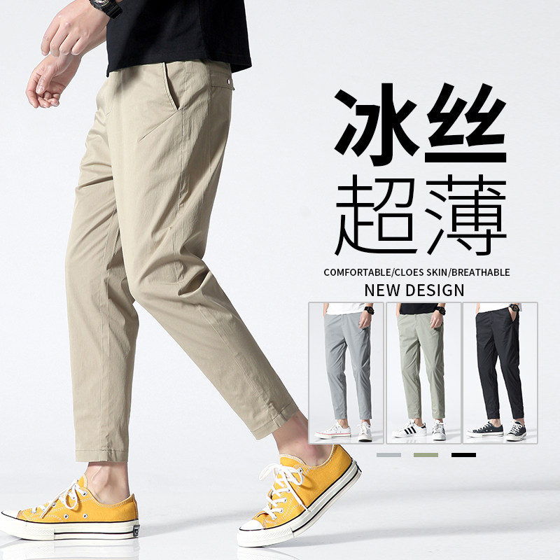 Pants Men's Summer Thin Ice Silk Men Casual Pants Loose Straight Cylinder Elastic 90% Little West Pants 100 Hitch Pants