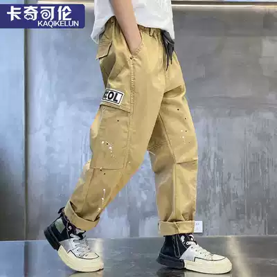 Boys overalls autumn thin 2021 new children Korean version of foreign style pants in big children handsome summer trousers