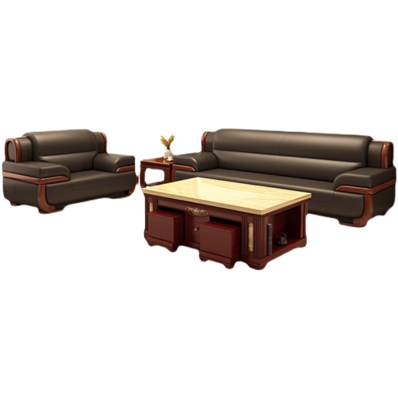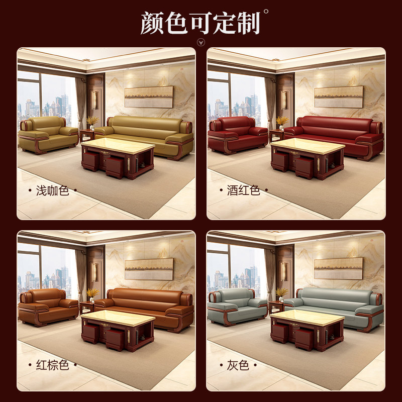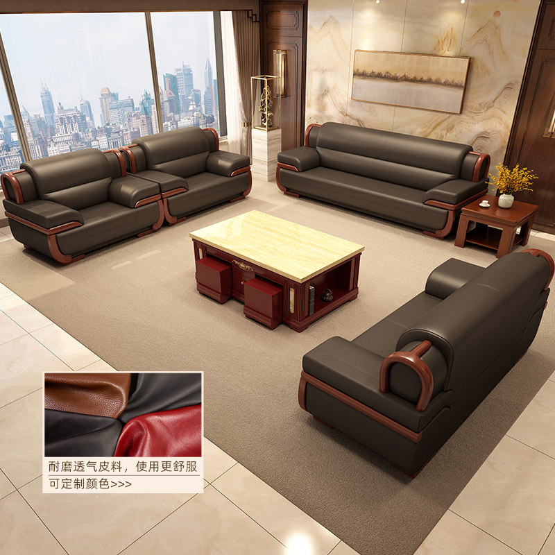 Office sofa, villa, business hotel, reception, negotiation, high-end leather three-seat coffee table combination set