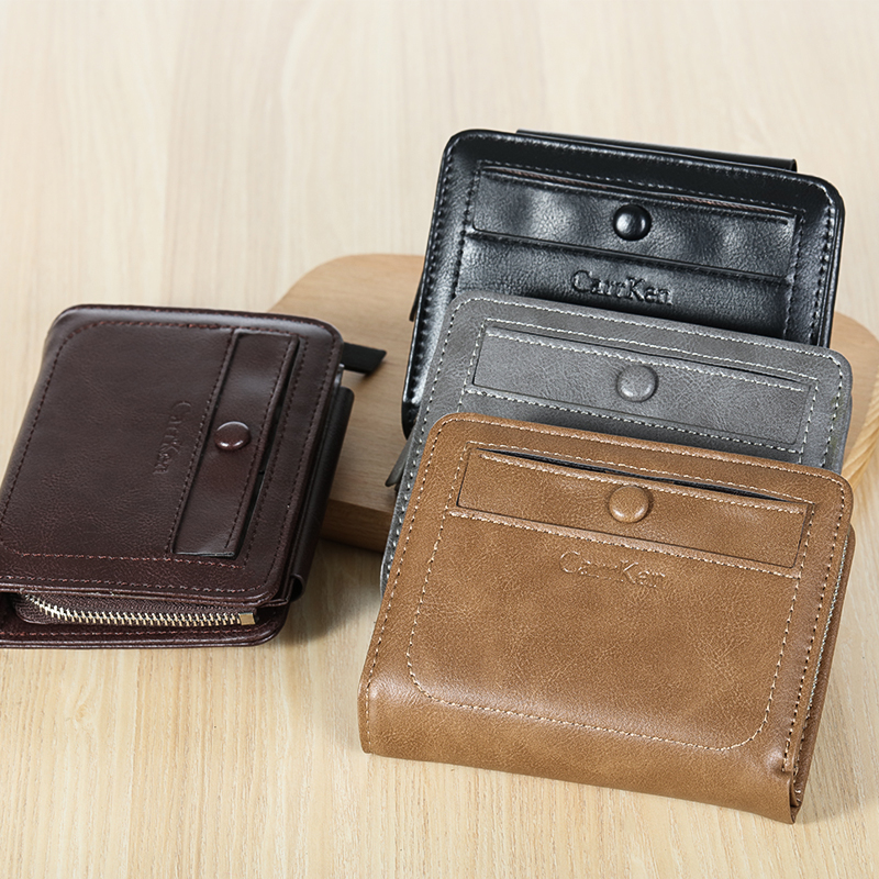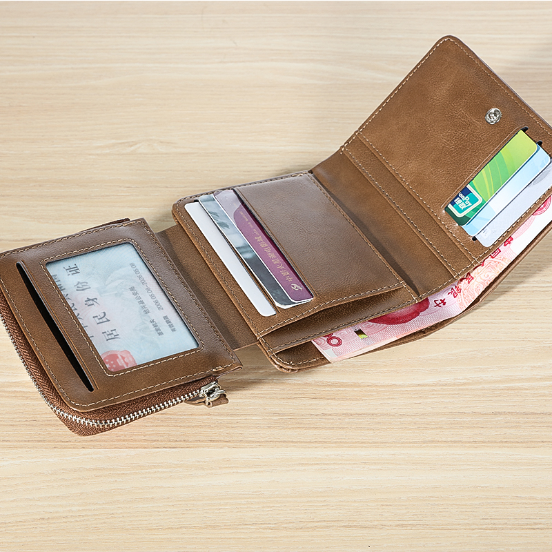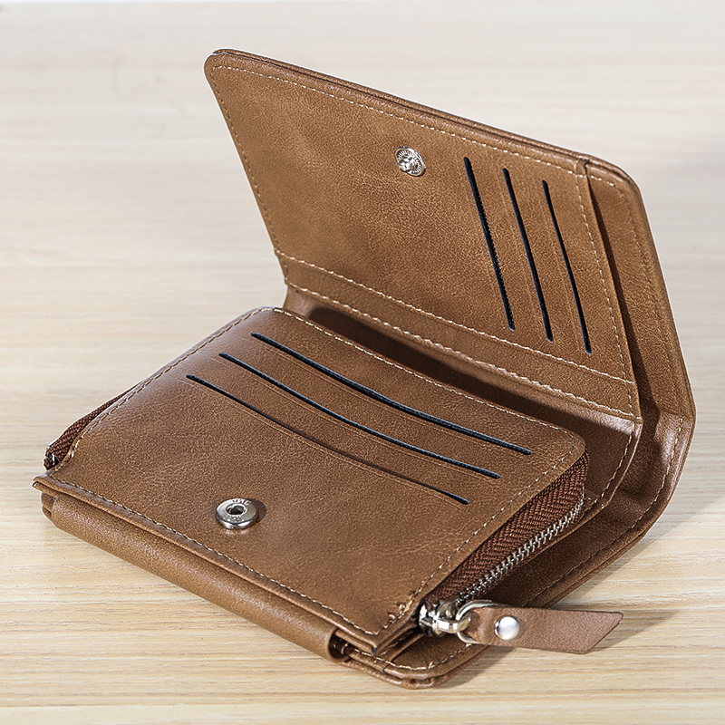 2021 new retro simple men's short wallet large-capacity multi-card zipper buckle coin clip three fold tide