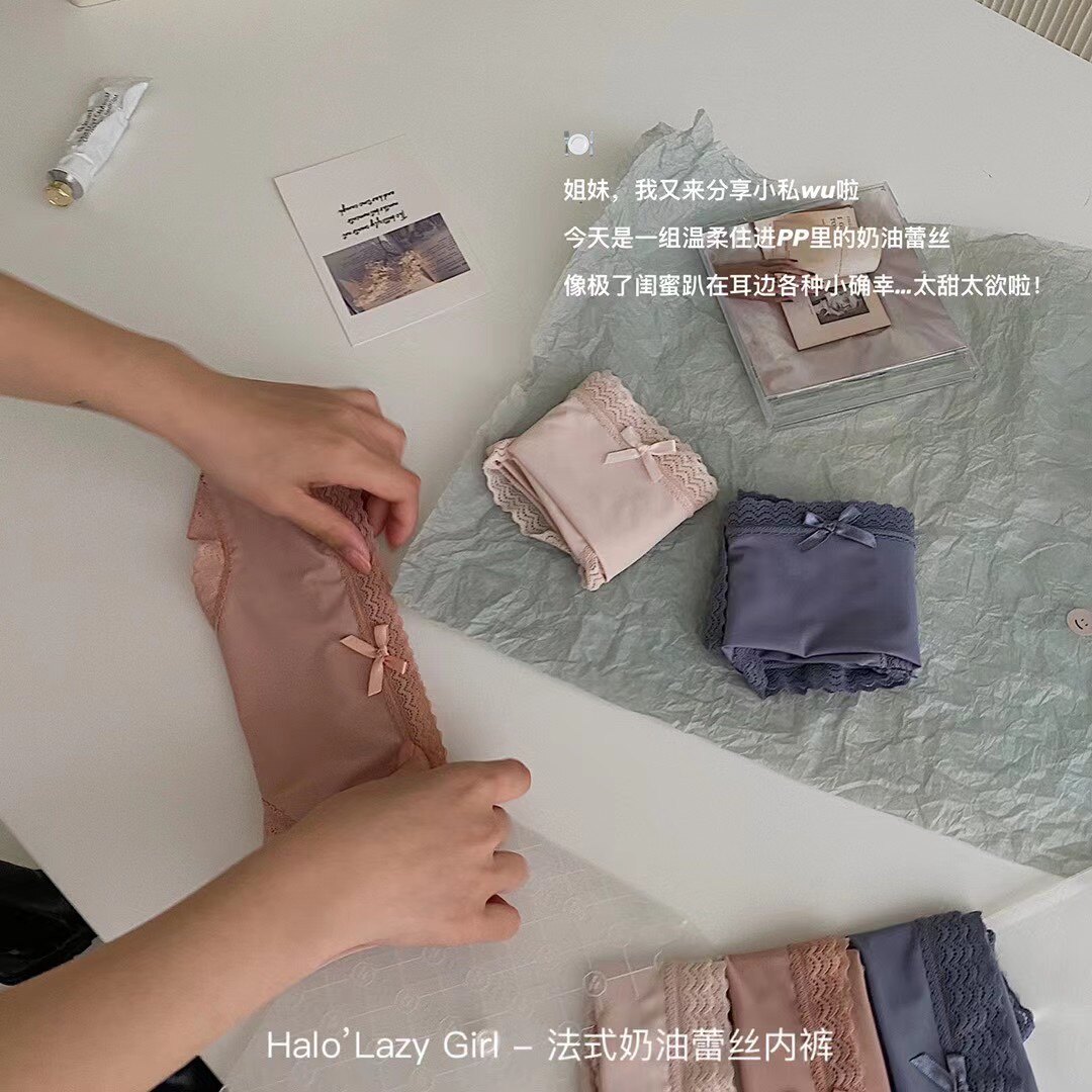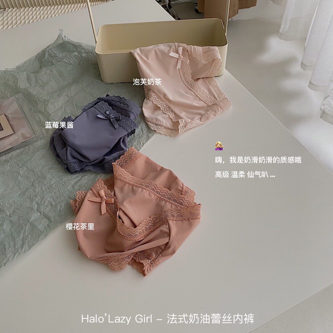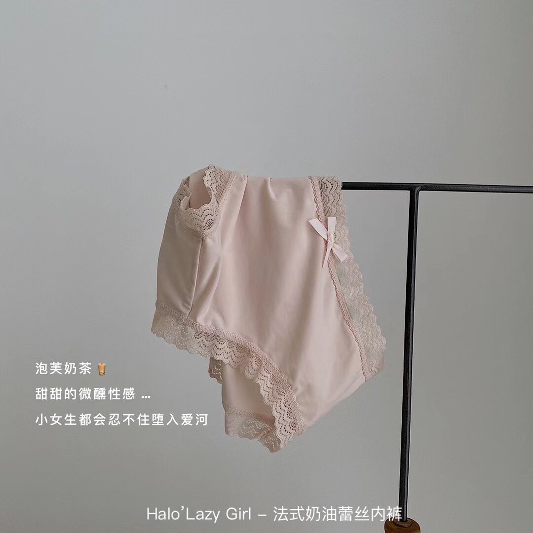 Halo girl French cream lace underwear women cotton crotch milk silk cotton stall antibacterial Ice Silk breifs