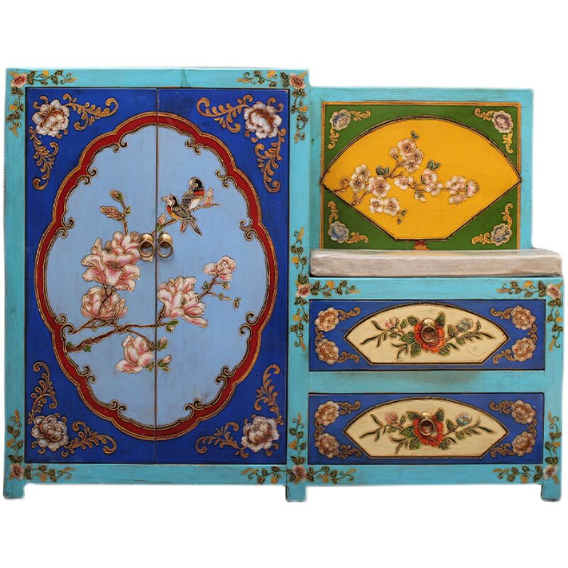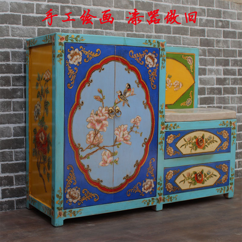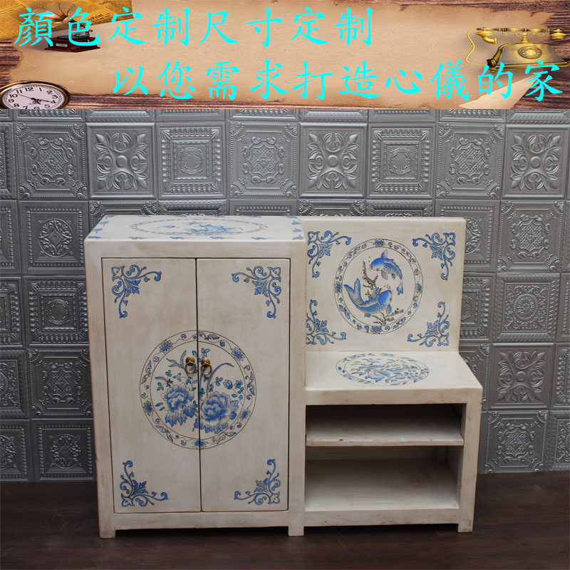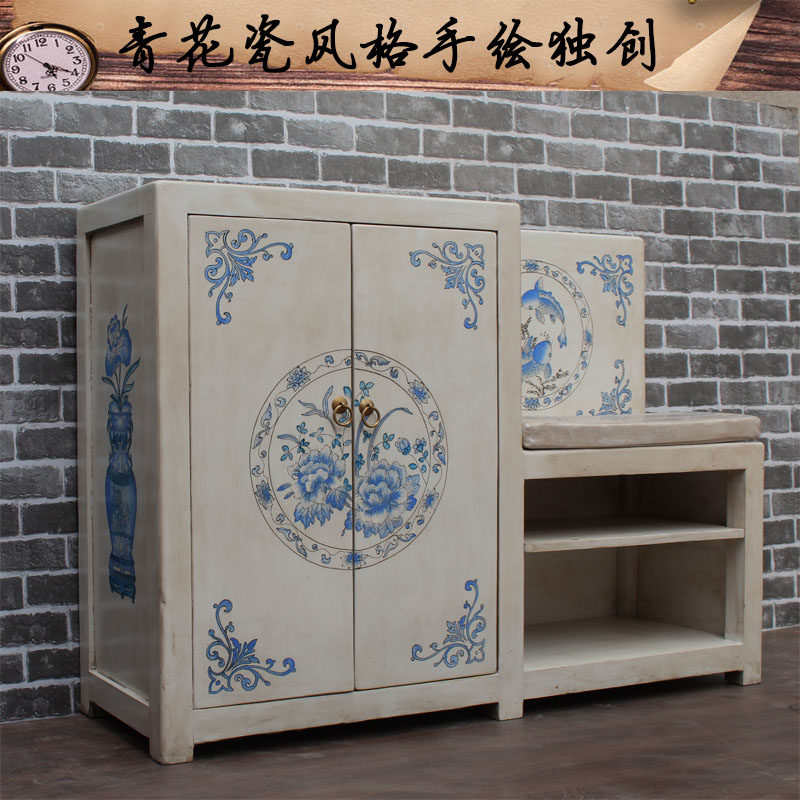 Net red modern Chinese style new pine solid wood painted shoe cabinet for wearing shoes stool multi-layer storage porch opposite door