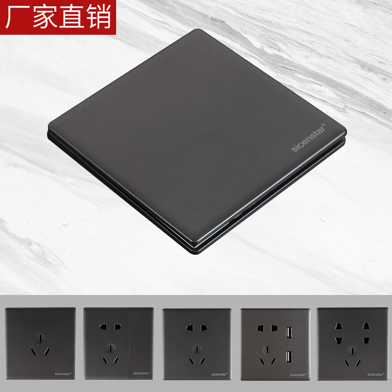 Switch socket panel type 86 wall concealed home improvement one open five holes porous with USB space gray flame retardant switch