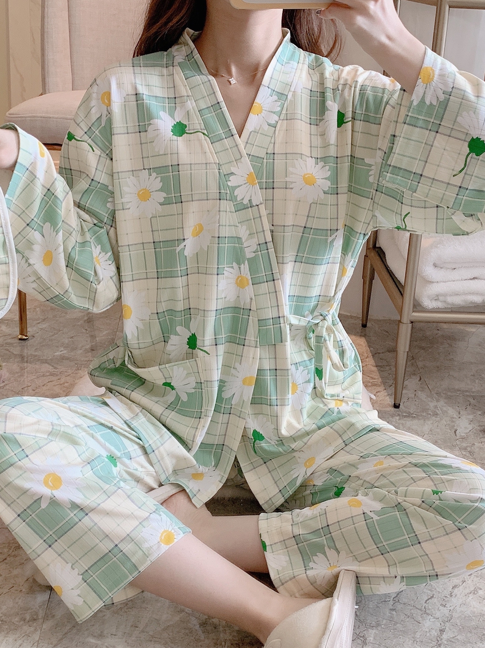 Fresh and cute spring and autumn cotton pajamas female sweet Japanese kimono ins wind loli student casual home clothes