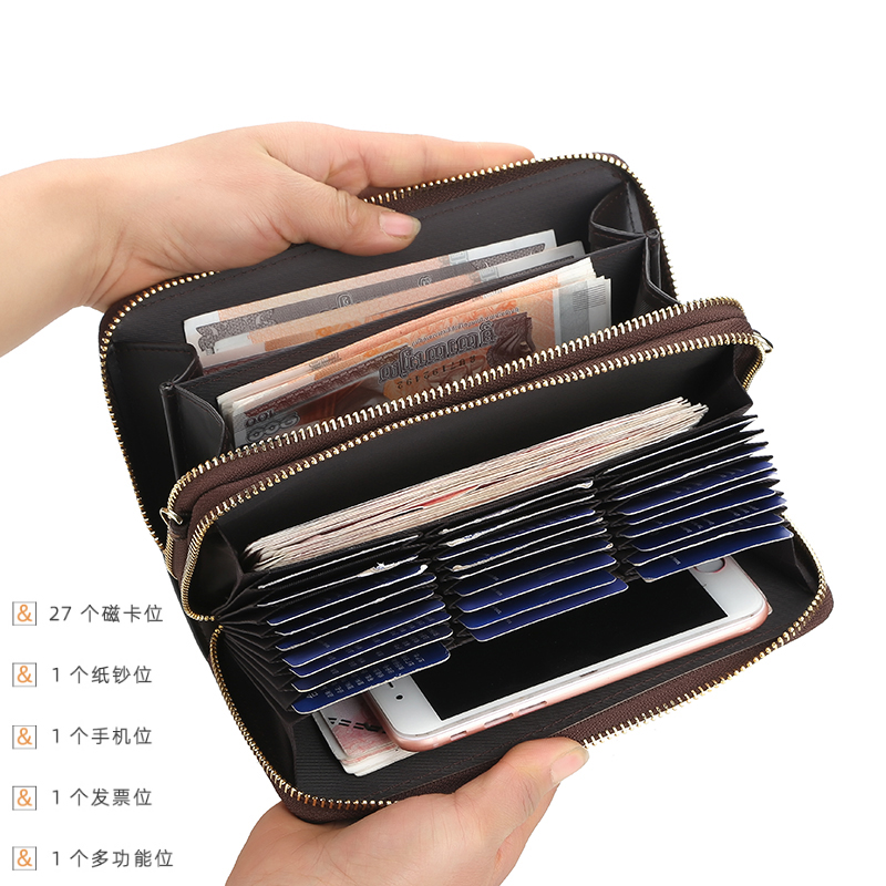 Passbook card holder Large bill holder ID card holder Photo holder Dark glass zipper pocket change holder