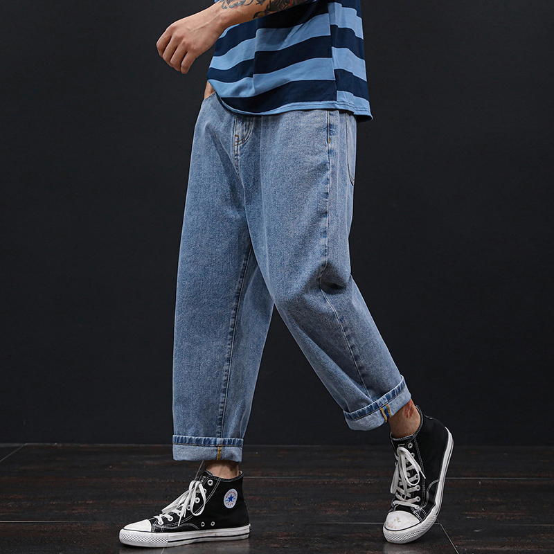 Autumn and winter style nine-point jeans men's loose wide-legged plus size plus size straight men's trendy fat men's daddy pants