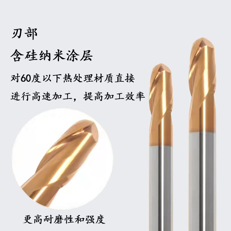 Xiaorong 70-degree high-hard 2-blade tungsten steel nano-composite coating ball-end milling cutter CNC machining arc ball cutter R1R2