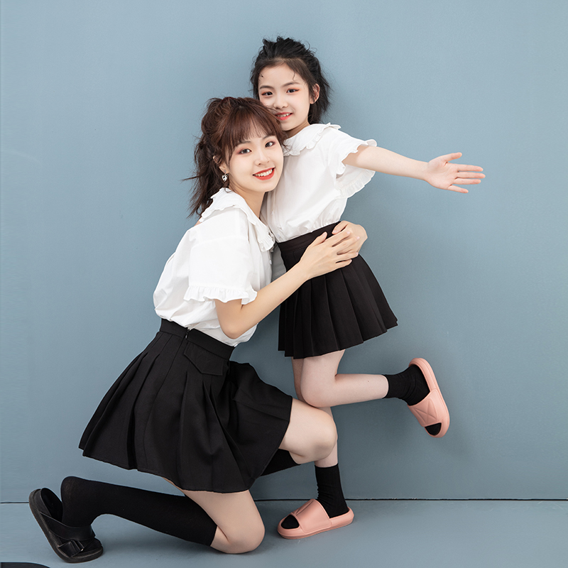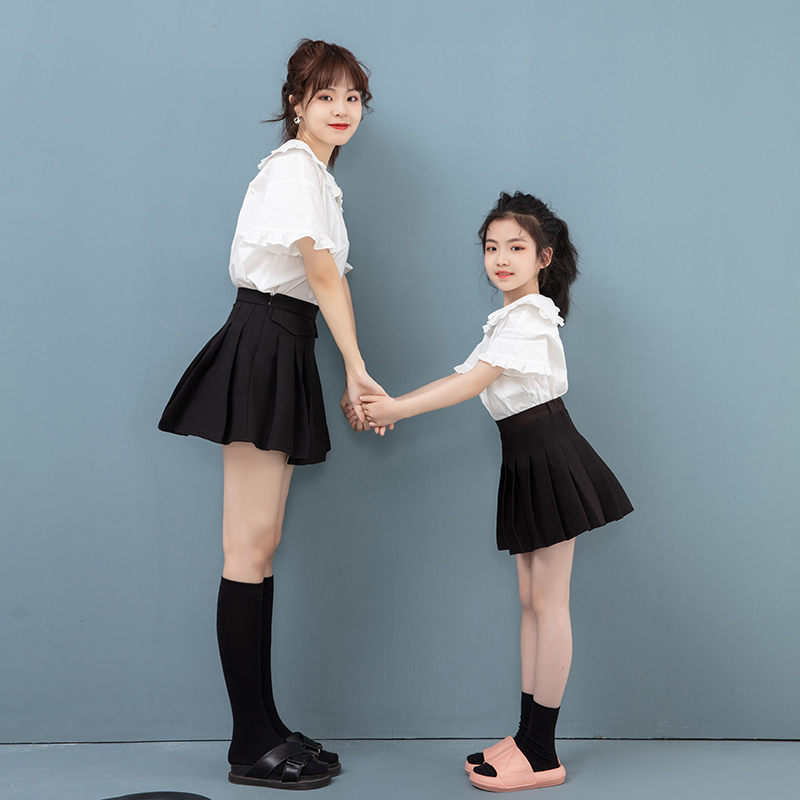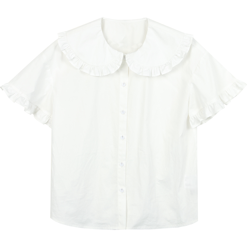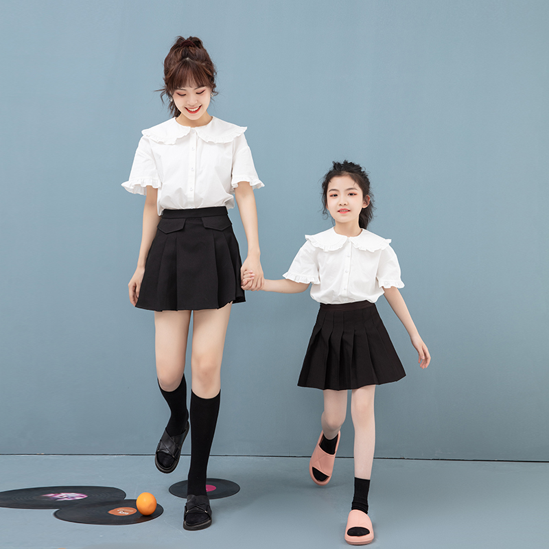Parent-child white doll collar girl shirt 2021 summer new lace short-sleeved cotton loose top for children