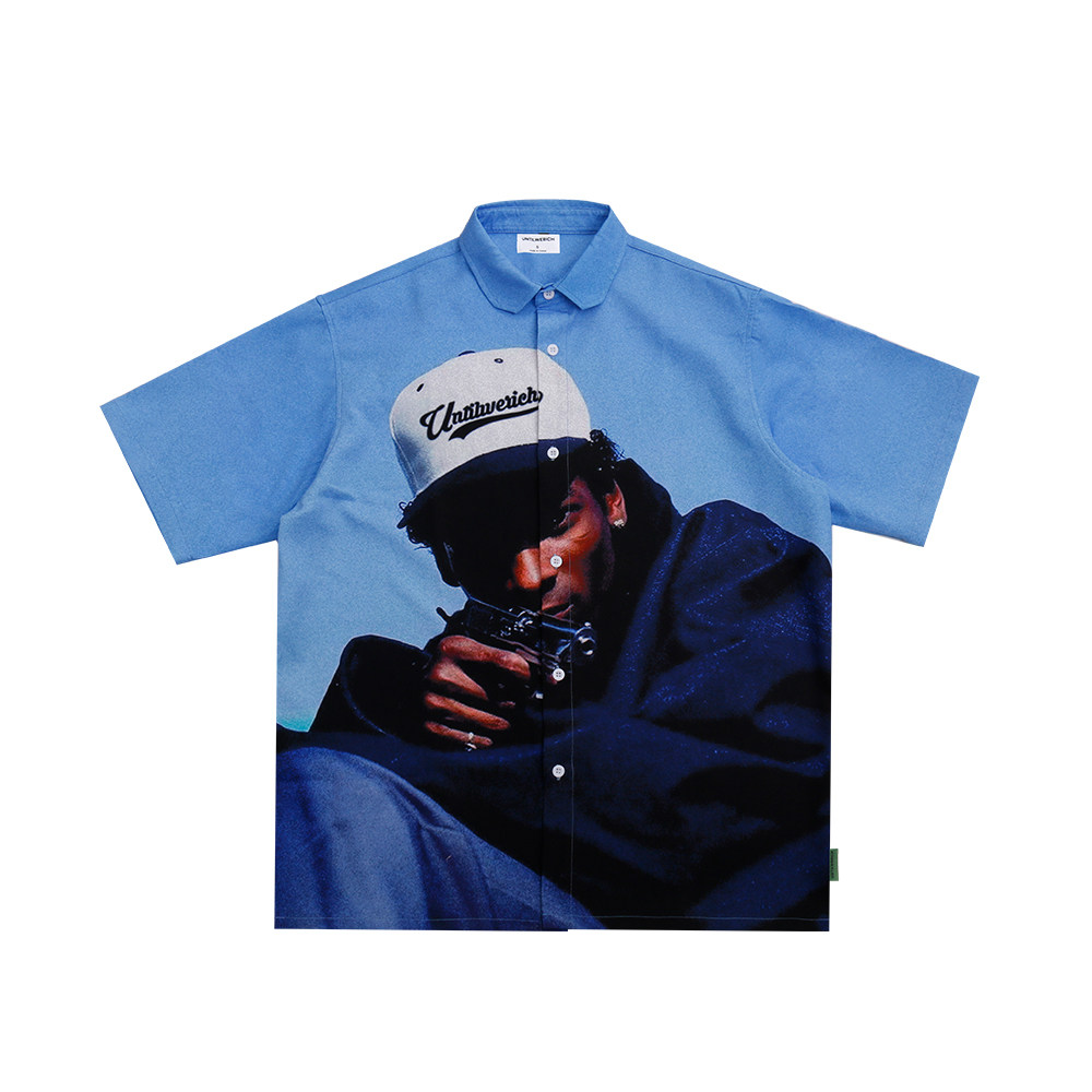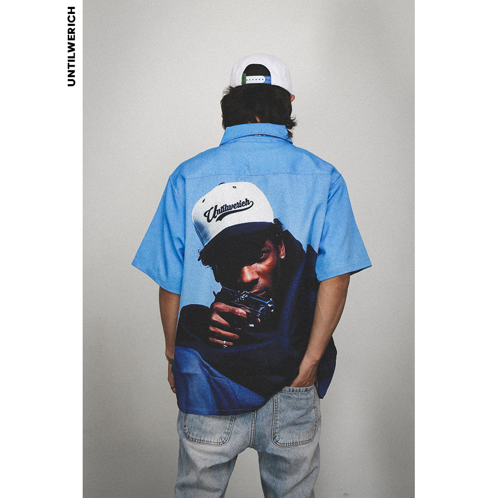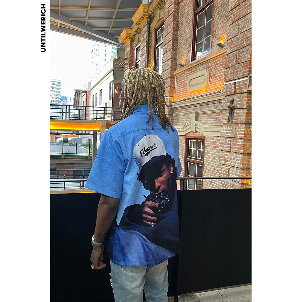 UNTILWERICH21 Summer American street Hip Hop snoop dogg print short sleeve shirt niche couple