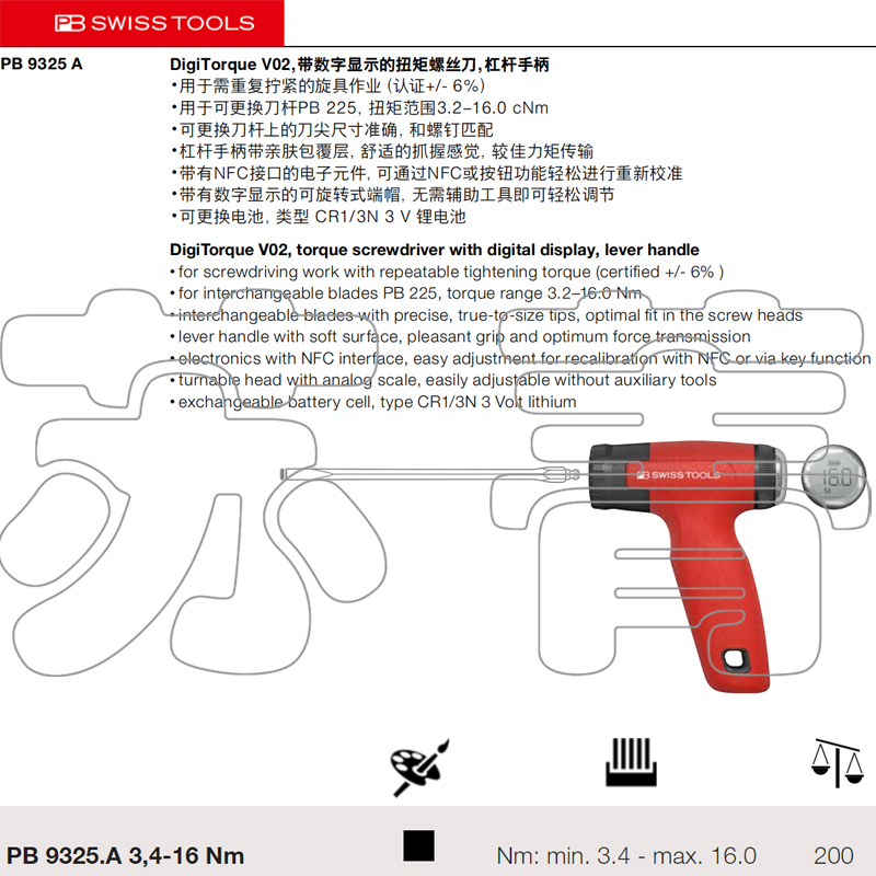 Swiss original dress PB SWISS TOOLS GUN STYLE NUMBER OF ADJUSTABLE SCALES BIG TORQUE HANDLE PB 9325 A