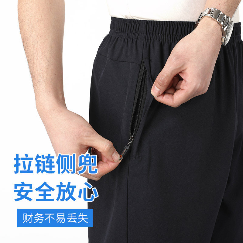Men's ice silk pants male daddy sports shorts old grandpa summer loose 50% pants outside wearing thin casual shorts