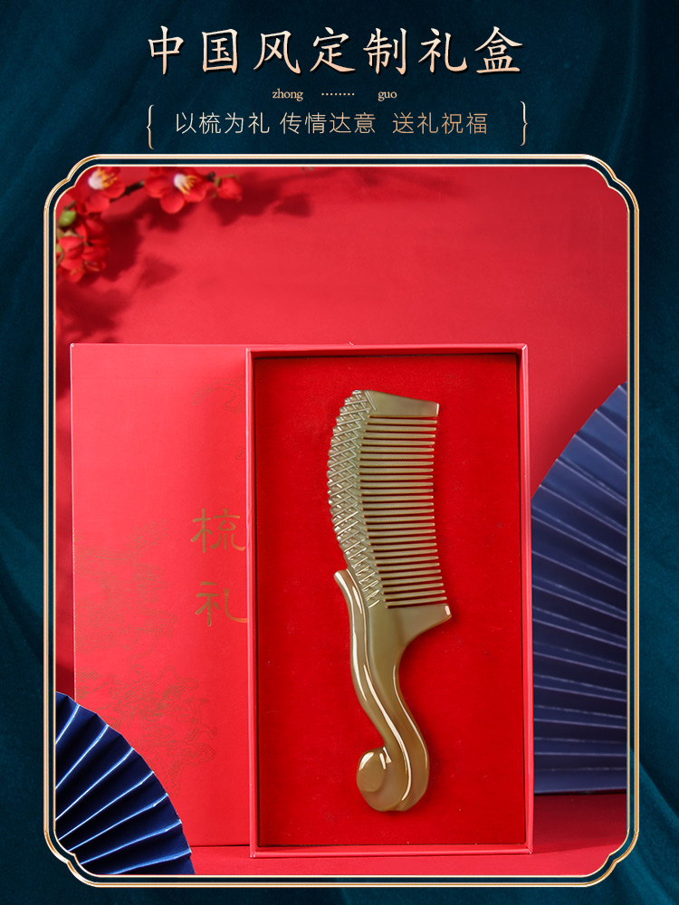 20cm thickened old white water buffalo horn comb (national wind gift box essential oil cloth bag) 20cm thickened old white water horn comb (rose gift box essential oil cloth bag)
