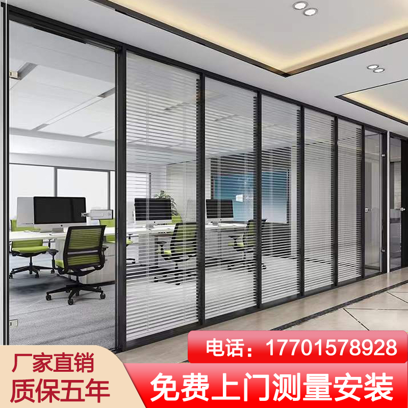 Suzhou Office Glass Partition Tempered Glass Frosted Built-in Shutter Aluminum Alloy High Partition Wall Soundproofing