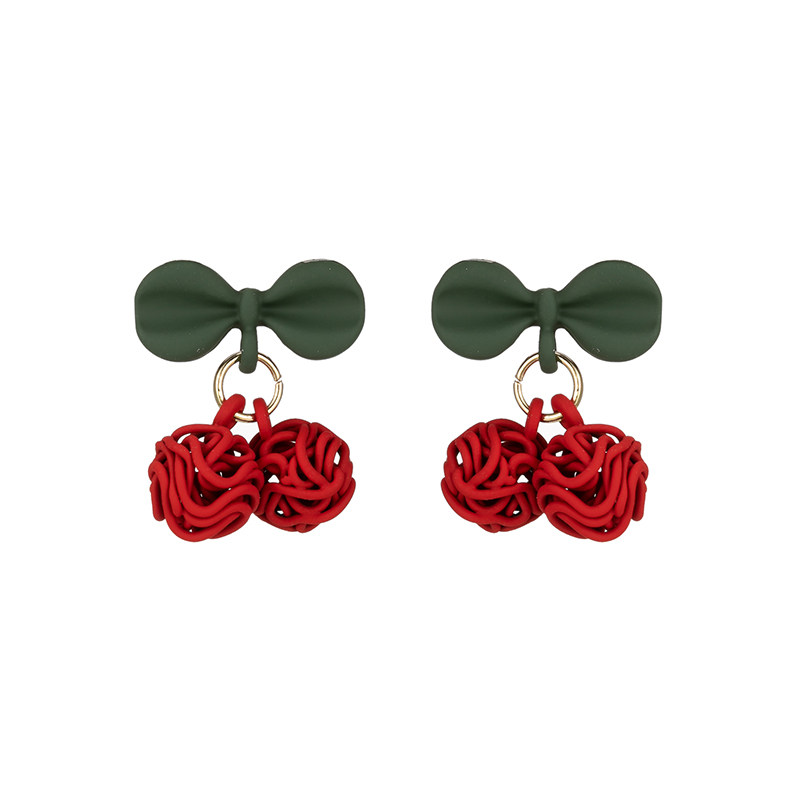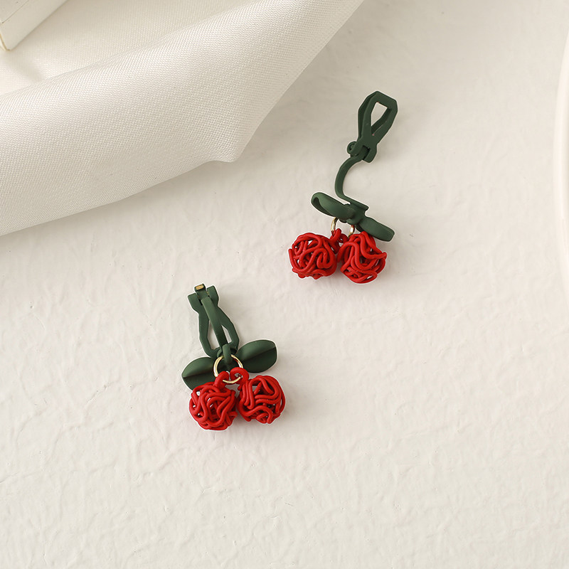 Butterfly-tipped red cherry earbucks lovely sweet coloured earrings Korea fashion temperament net red ear hole earbucket