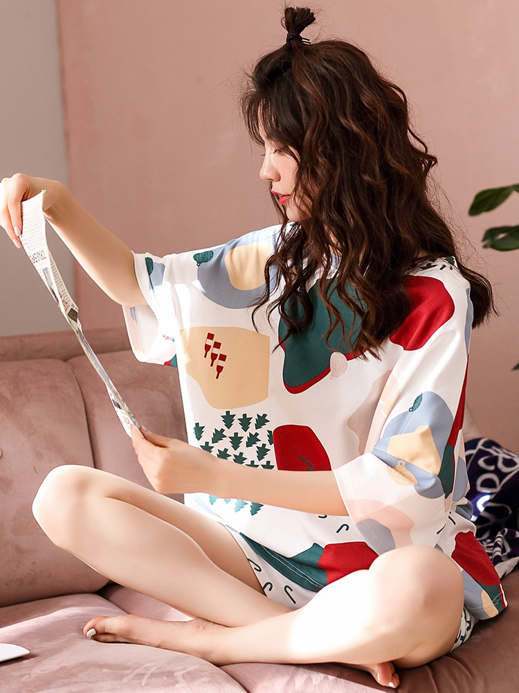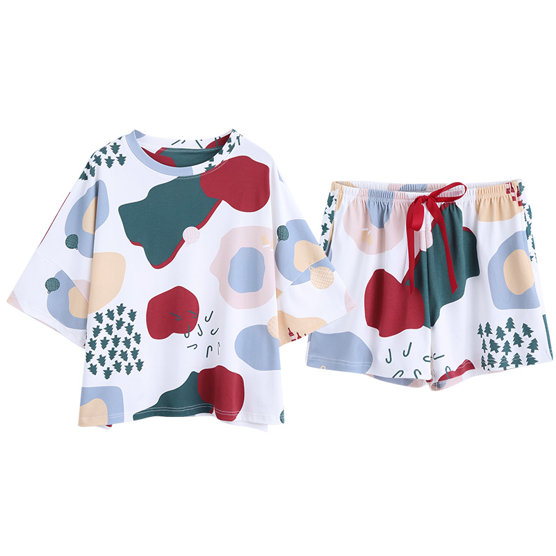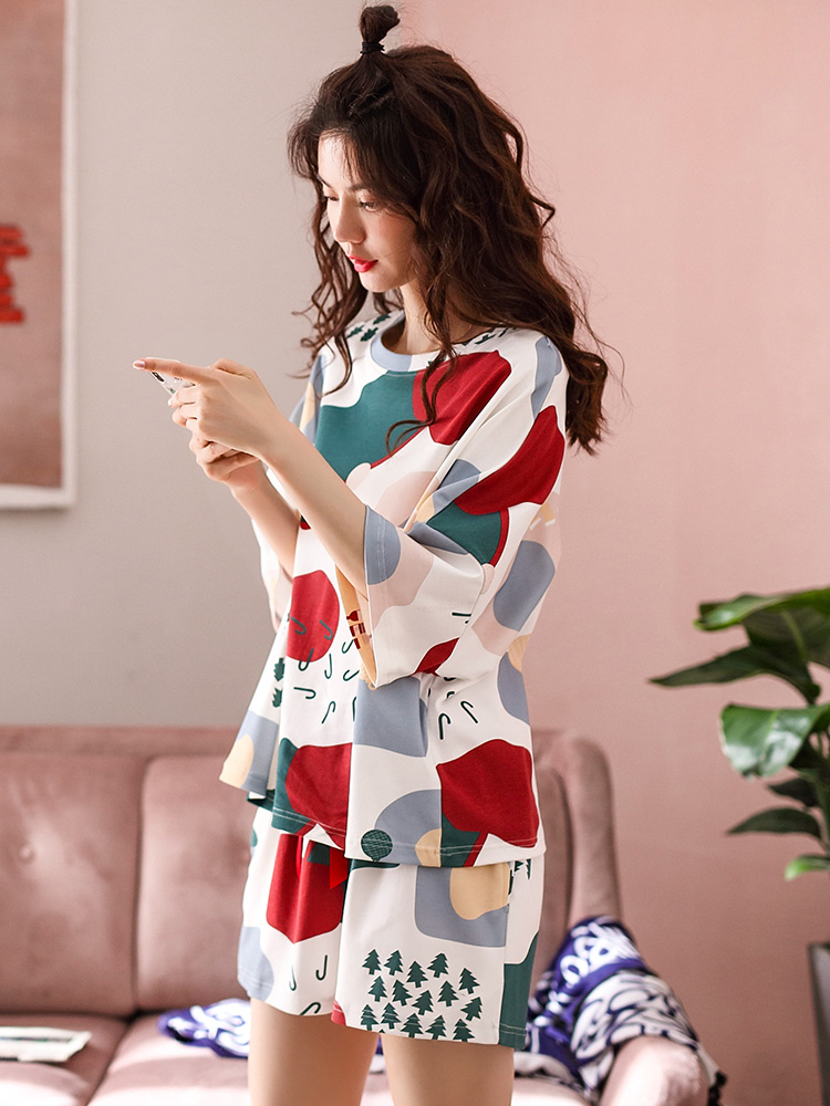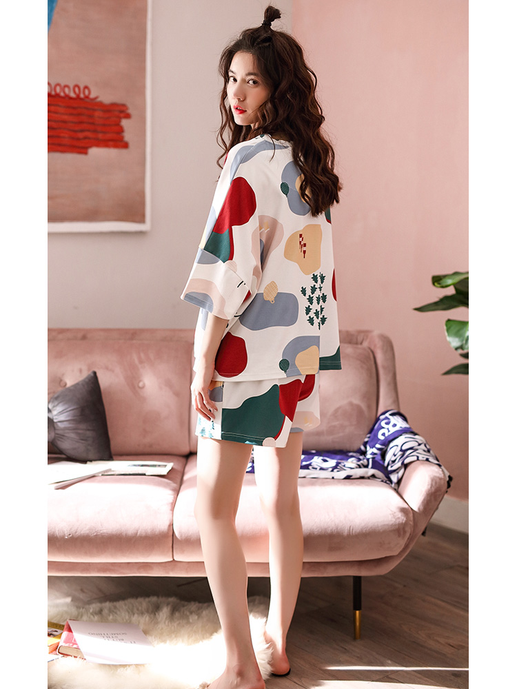 Printing and dyeing casual style ~ Feihan good goods summer pajamas ladies cotton short-sleeved shorts thin homewear suit