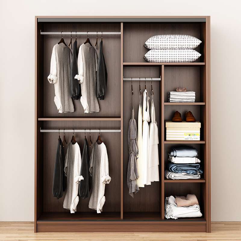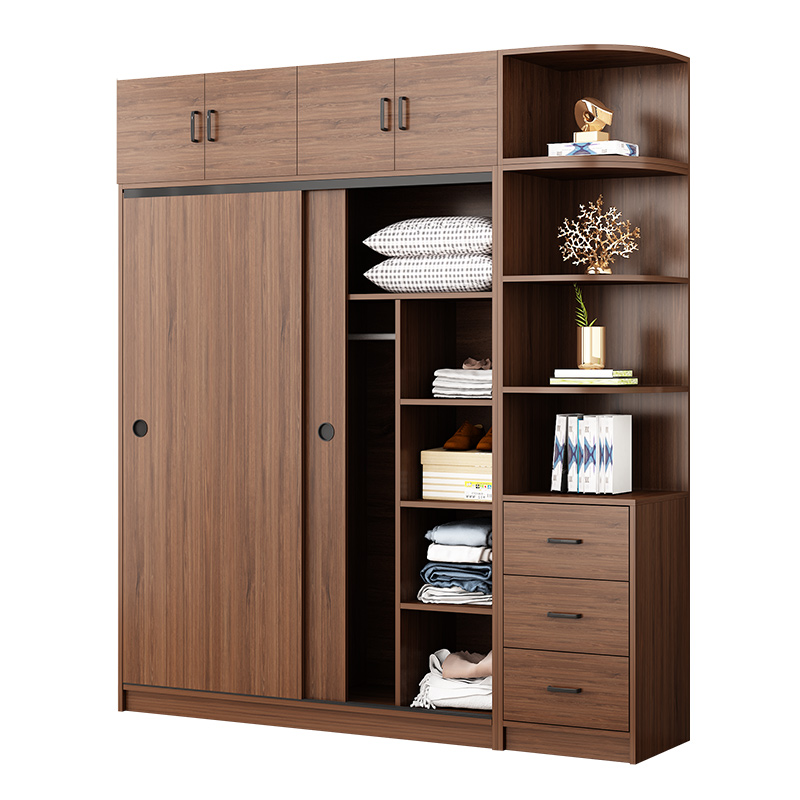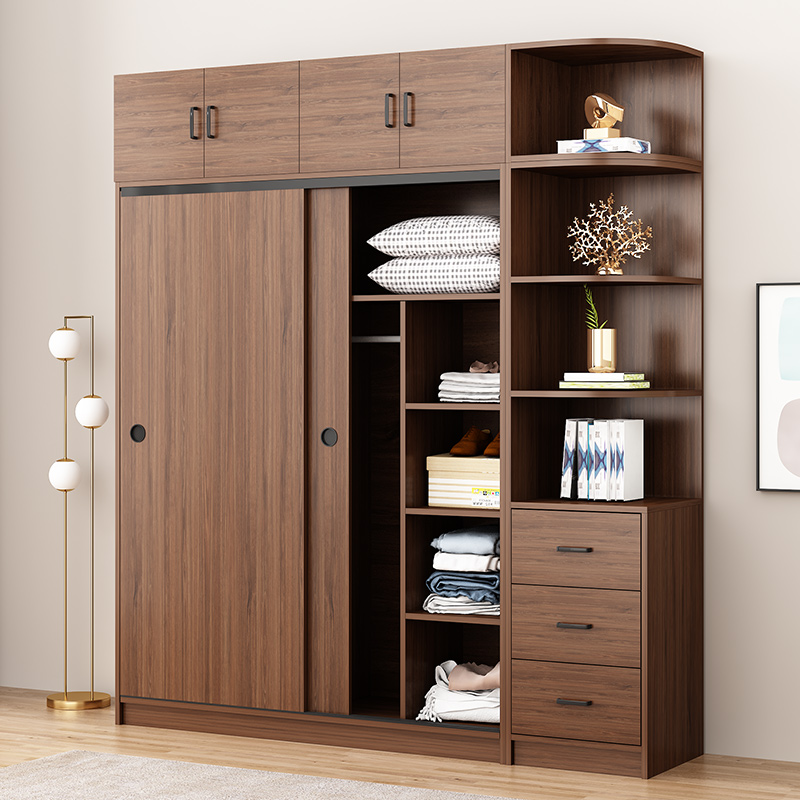 Wardrobe home bedroom whole cabinet solid wood sliding door simple modern economy rental room storage big wardrobe