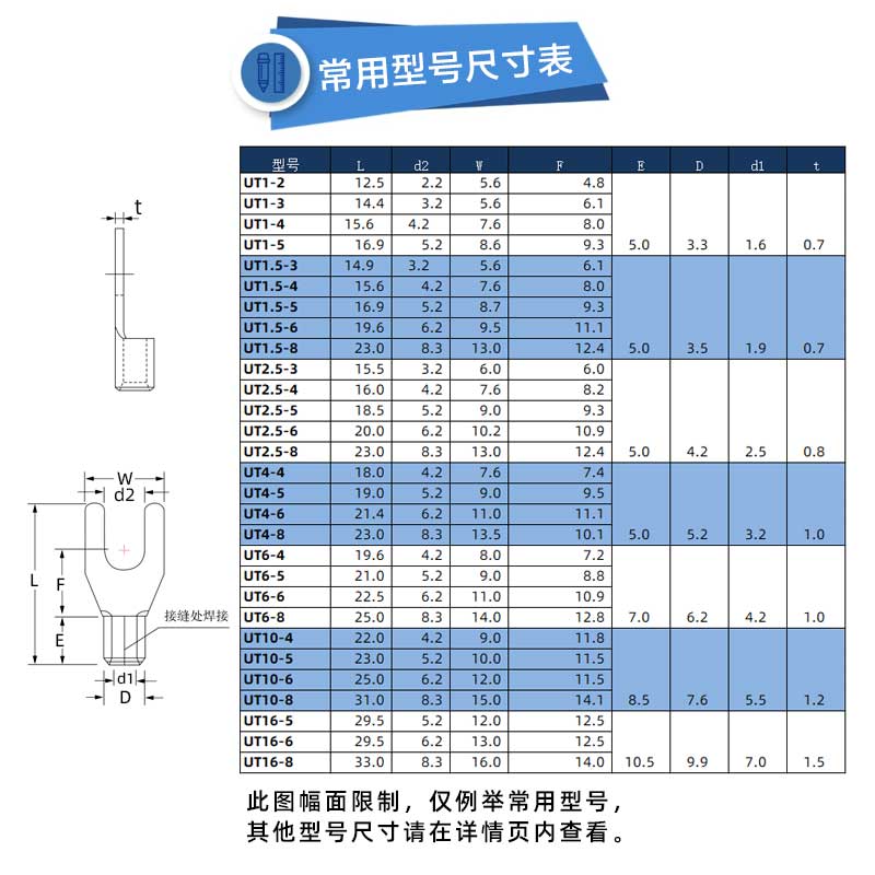 UT cold pressed terminal Blade nose thickening 1 5-23456790 square fork ear joint