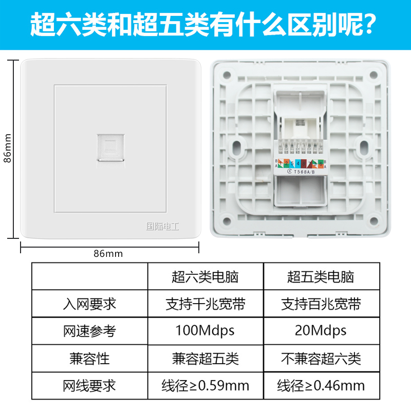 Type 86 Ultra Category 6 Network Socket Gigabit Fiber Optic Network Cable Plug Ultra Category 6 Computer Socket Single Port Dual Screen Panel