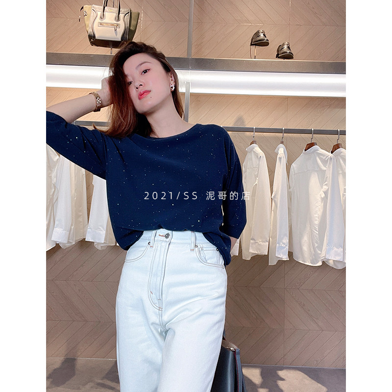 Clay Gothic Shop See also blingbling Xinjiang Combed Cotton Bright Pearl Sheet Beating Bottom Short Sleeve T-shirt