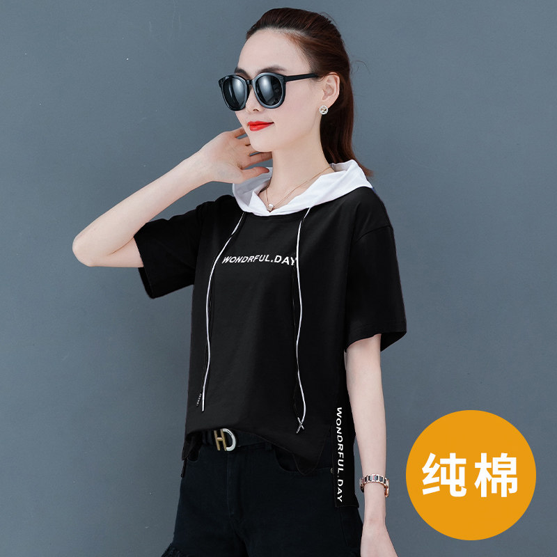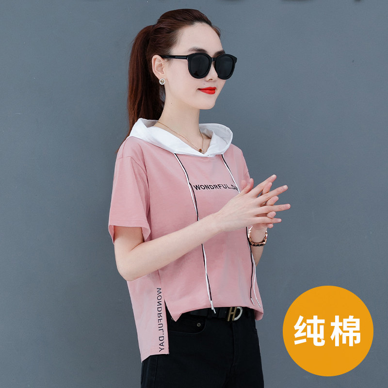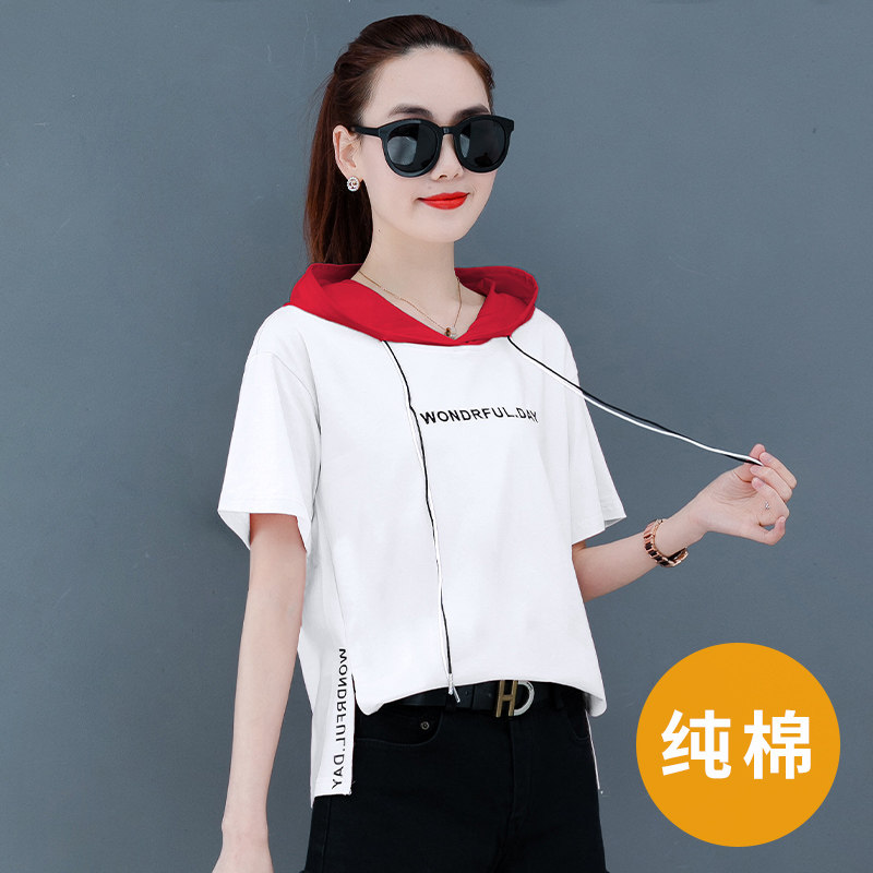 Summer pure cotton short sleeve T-shirt woman 2022 Summer new Korean version loose half sleeve 100 hitch on clothes summer clothes