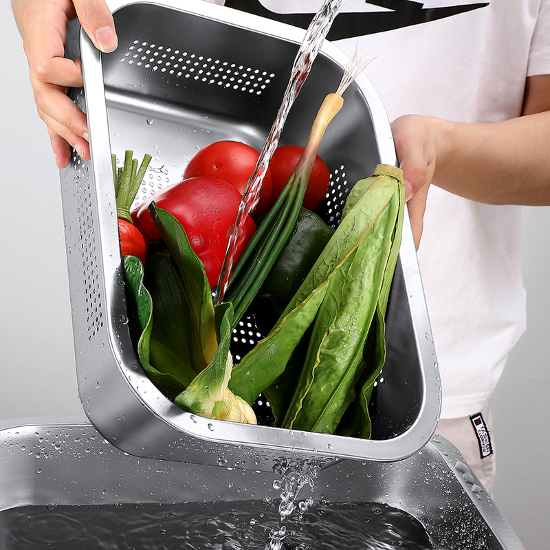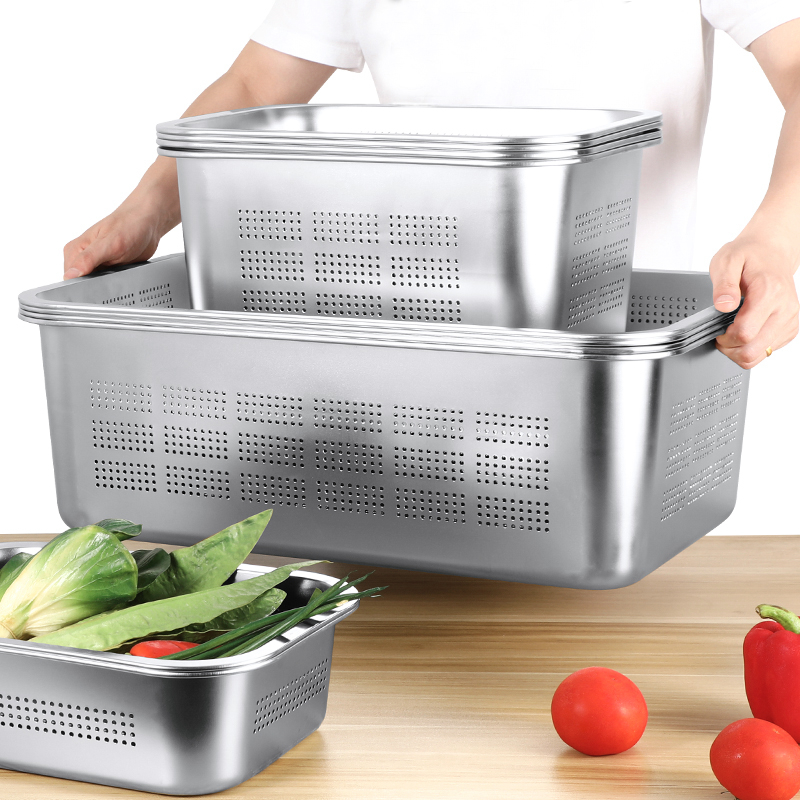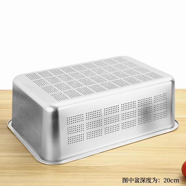 Extra-large deepening stainless steel draining basin rectangular punching square basin washing vegetable basket drying basket mesh drain basin vegetable basket filter basin