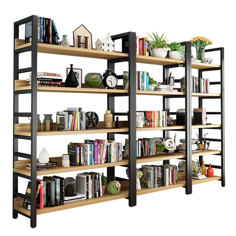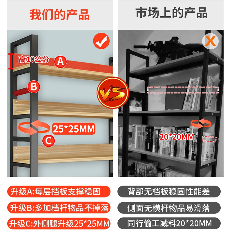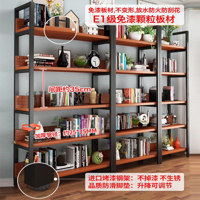 Bookshelf floor-to-ceiling simple steel wood multi-layer shelf Simple bookcase Household living room Wrought iron shelf shelf shelf shelf shelf