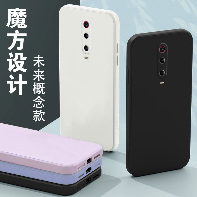 Magic Cube Mobile Phone Protection Shell Red Rice K20Pro Pure Color Minima New redmiK20 Tide Card Male and female housing Right Angle Side Liquid Silicone Square Lens Full Package Soft Shell Ultra Slim Anti-Fall Frosted Protective Sheath