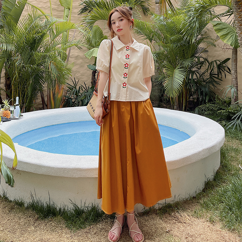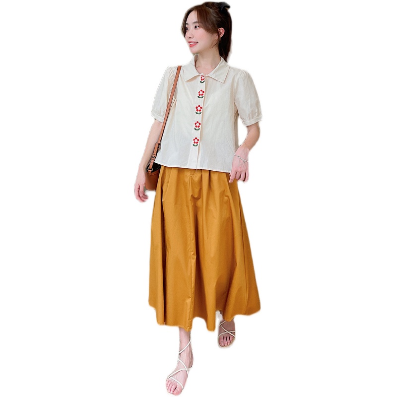 Gu Qiqi GUQIQI summer dress new embroidered flower shirt skirt suit fashion age-reducing thin linen two-piece suit