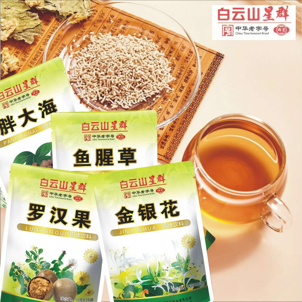 3 packs of Baiyunshan honeysuckle herbal tea, fat sea, Houttuynia cordata, Guangdong herbal tea Qinghuo granules, Xiahuowang hot granules N