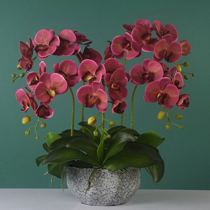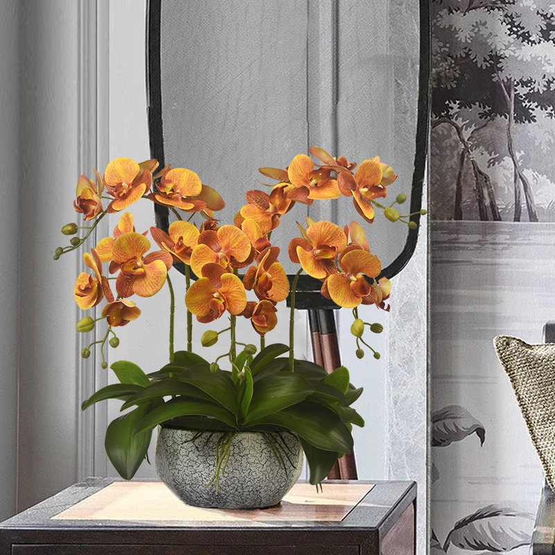 Simulation Phalaenopsis fake flower high-grade orchid green plant potted living room porch TV cabinet wedding decoration floral ornaments