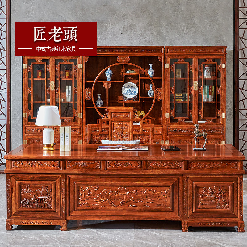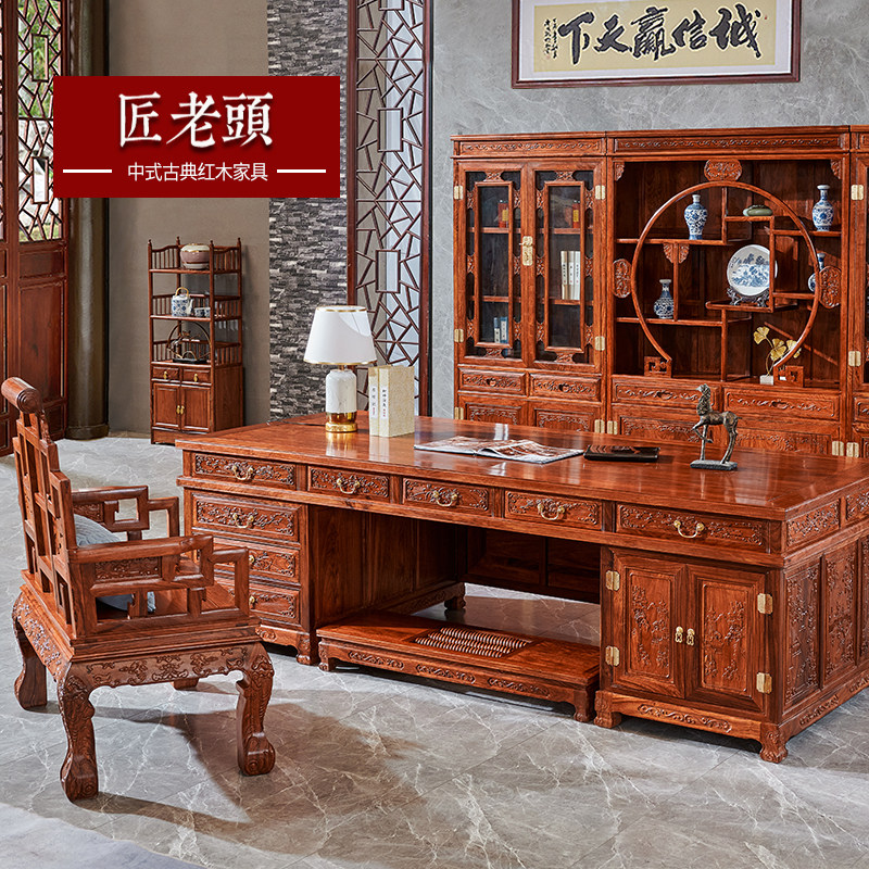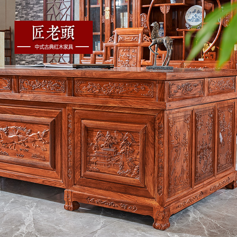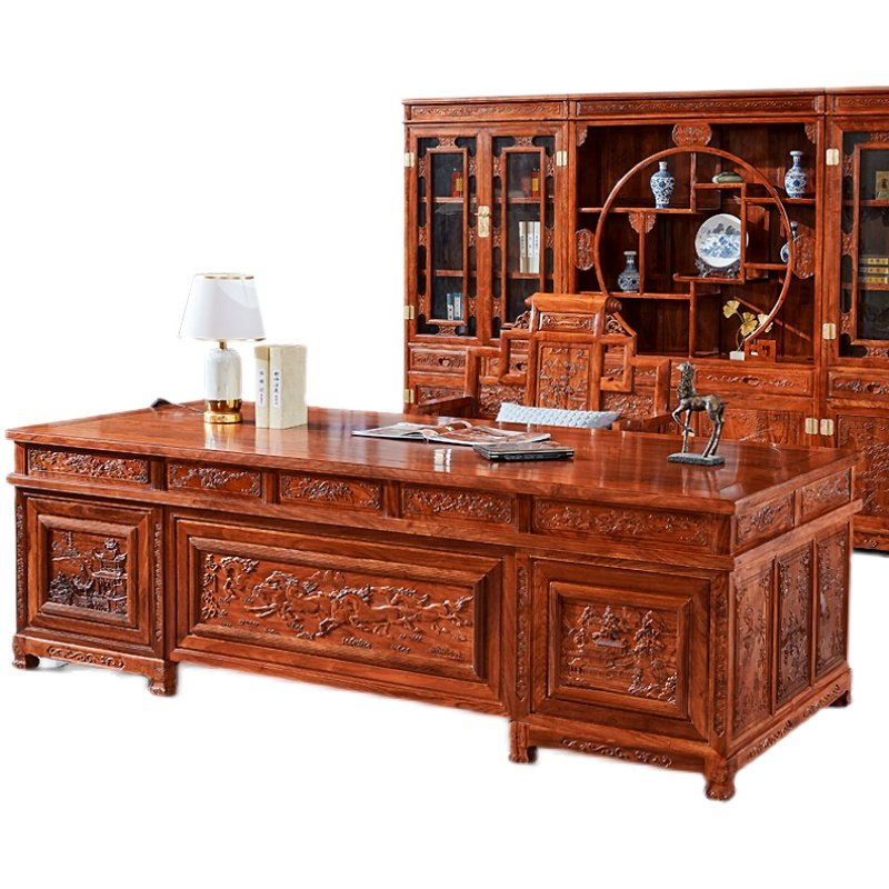Red Wood Desk Chair Combo Hedgehog Purple Sandalwood Desk Boss Table Flowers Pear Wood Solid Wood Large Class Desk Chinese Desk