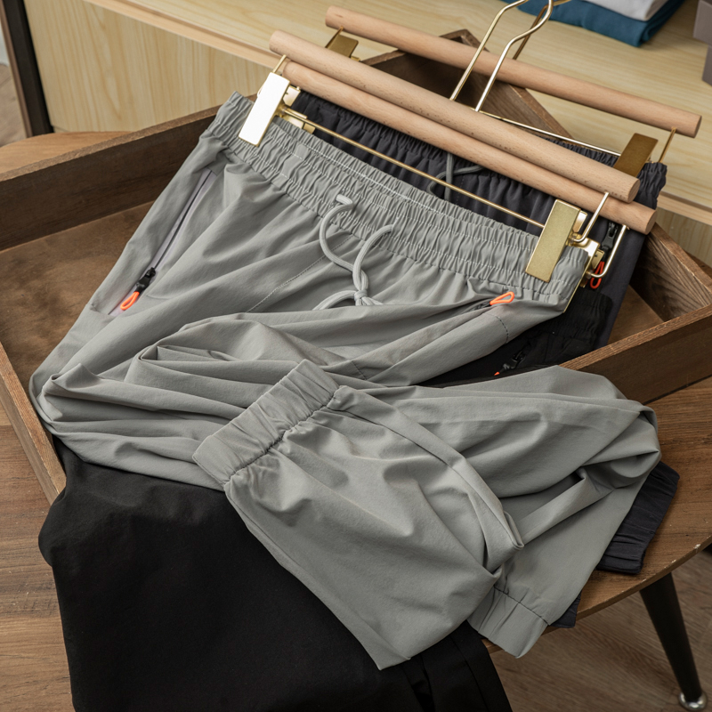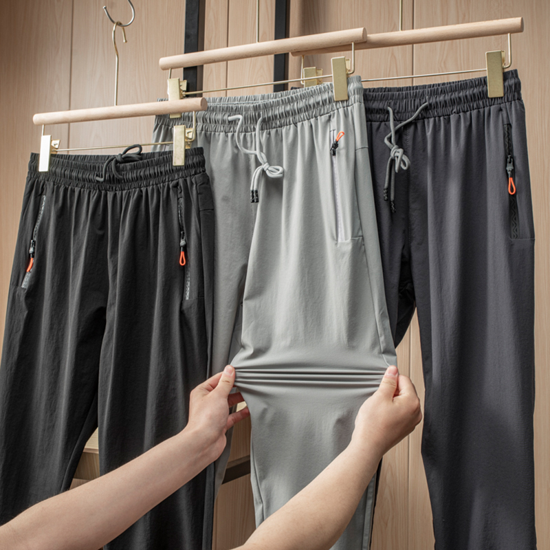 Hand in hand a super comfortable big elastic ice silk thin section men bunches quick dry breathable casual sports pants long pants