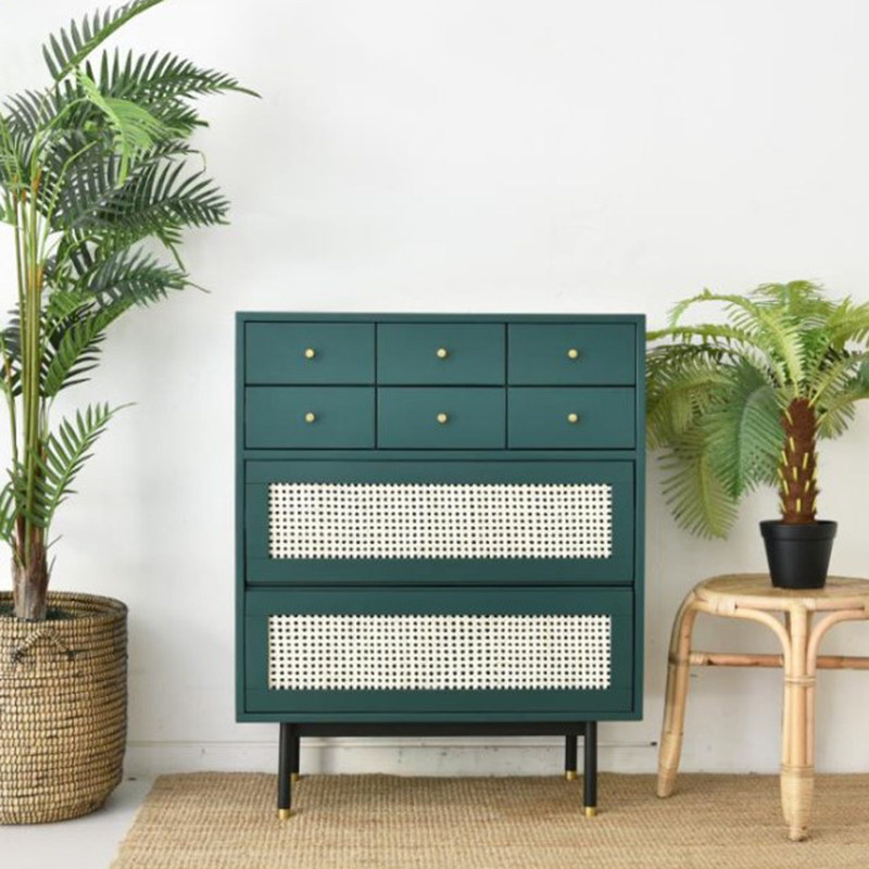 Solid wood rattan storage cabinet drawer cabinet light luxury drawer cabinet simple modern small apartment living room storage cabinet three or five drawer cabinet