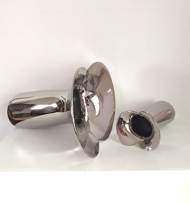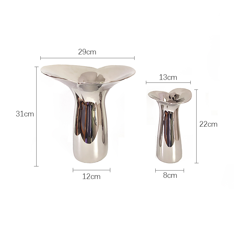 Modern Art Home Plated Ceramic Silver Floral Tea Table Dining Table Decoration Pendulum designer Trumpets Vase
