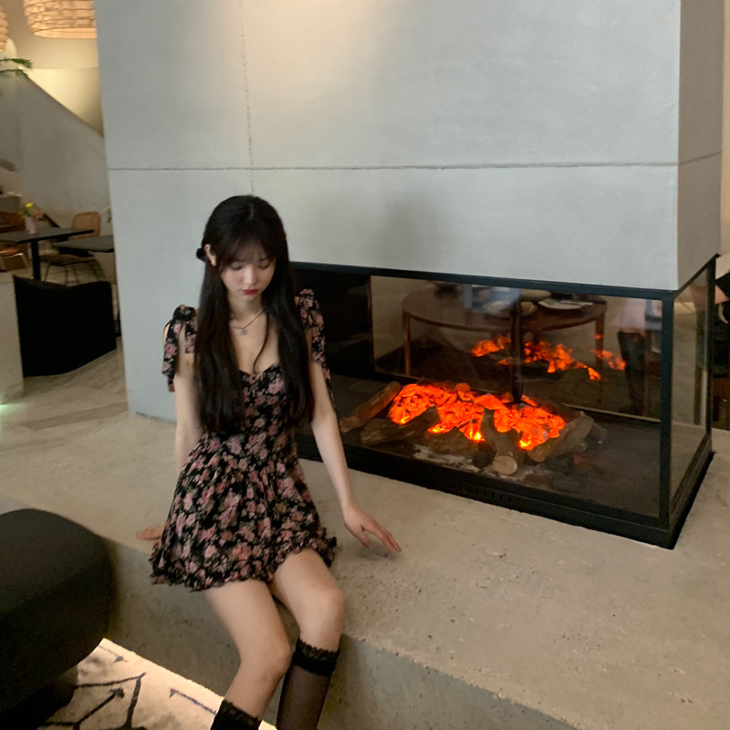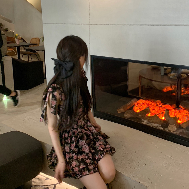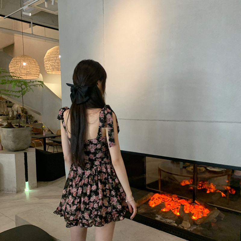 Home Halo Lala Earthly Desert Rose Summer Dress Women's New Broken Flower Bow Tie Harnesses Foreign Dress Chili
