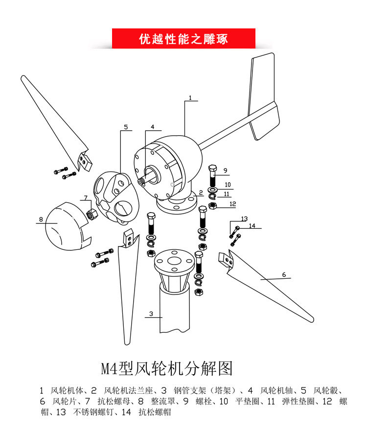 Efficient power generation M4 600W 700W grassland camp marine household wind turbine 24V wind and solar complementary