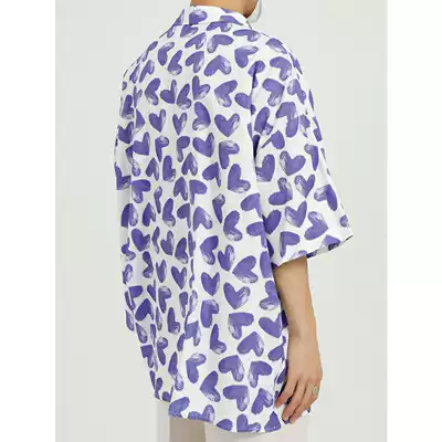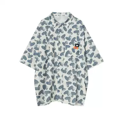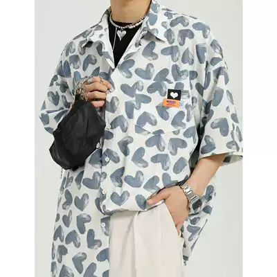 Dosho2021 summer new blue fresh short sleeve shirt men loose Harajuku wind full printed love shirt men